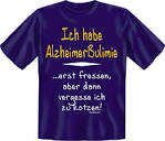 ALZHEIMER BULIMIE Fun Shirt XL XXL 3XL 4XL 5XL (15. Meine Frau hat die Alzheimer-Bulimie: Sie ißt. Das Alzheimer ist eine Krankheit aus dem Abendland. ihre ideale Ausrüstung bei Amazon).